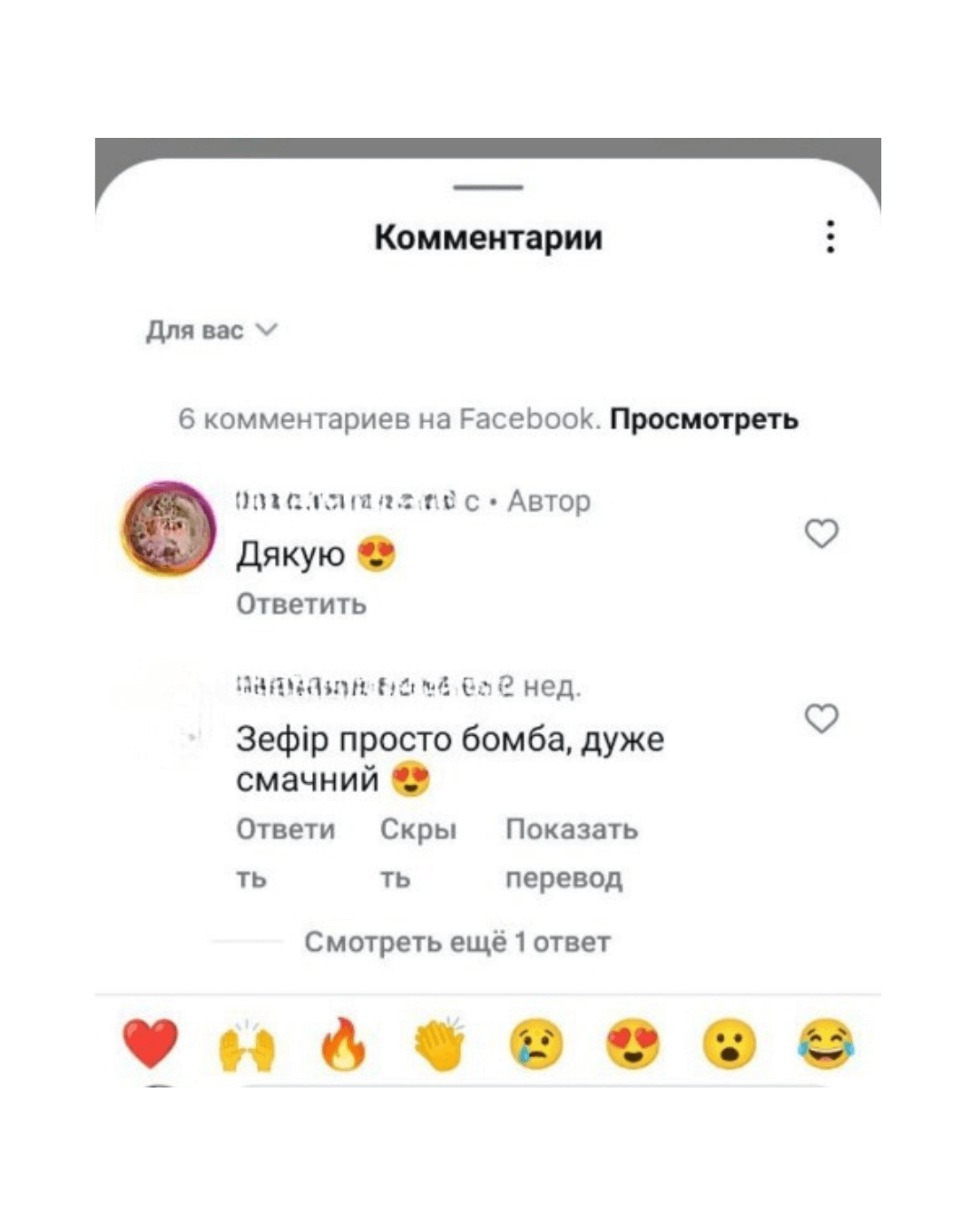 ⚠️ Важливо: зефір містить яєчний білок, тому людям з алергією на білок курячого яйця потрібно враховувати це перед замовленням.