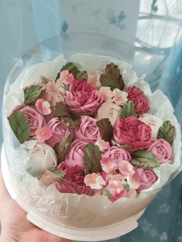 Квіти виглядають як живі, але це повністю ручна кондитерська робота.