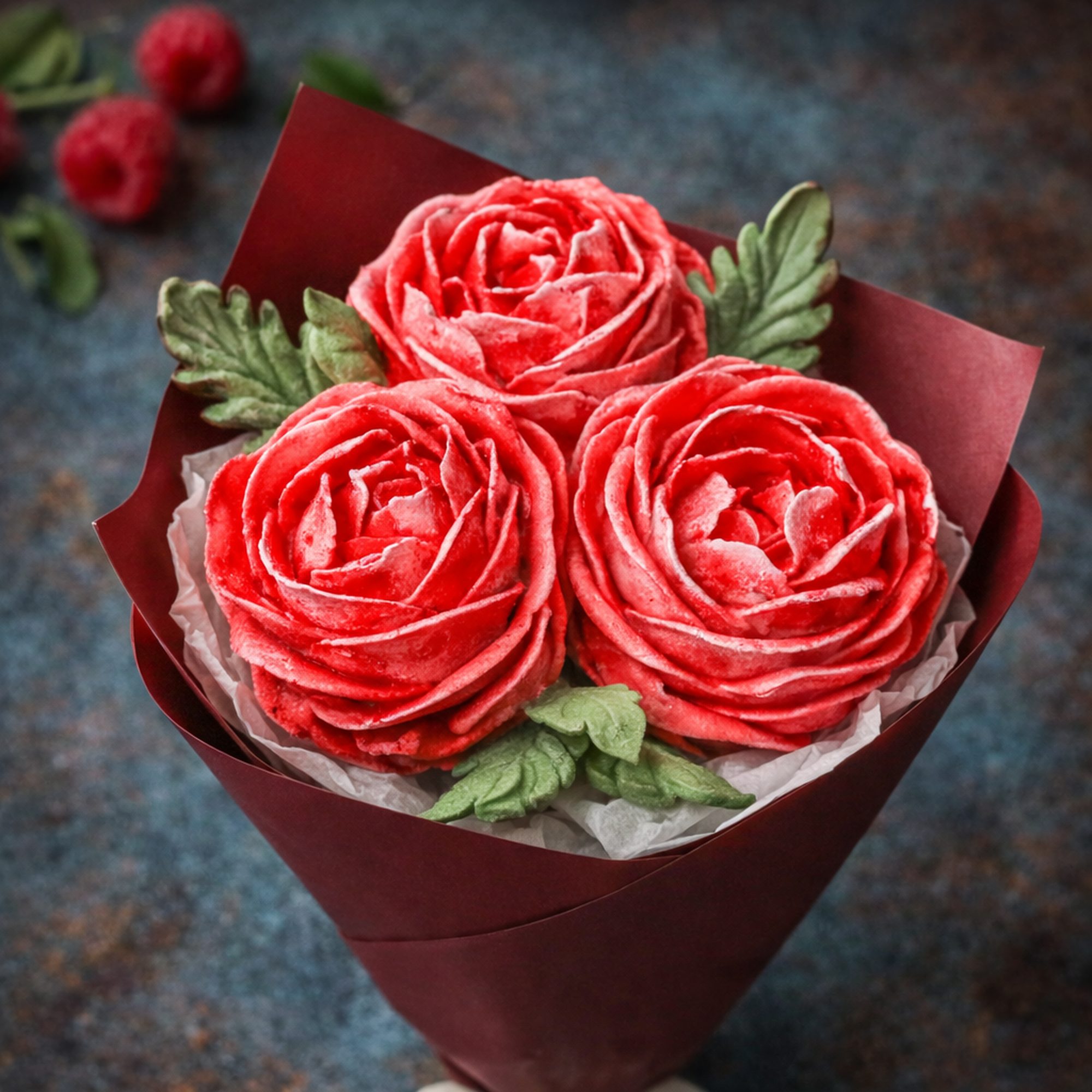 Кожна квітка створюється вручну з агар-агару, ягідного пюре та білка — без штучних ароматів і сумішей.